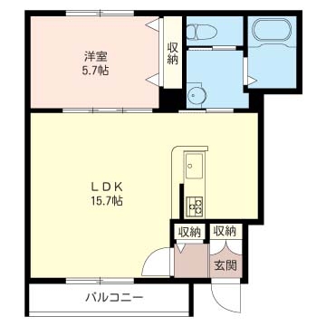 間取 (タイプ) | 1LDK (カップル向き) |