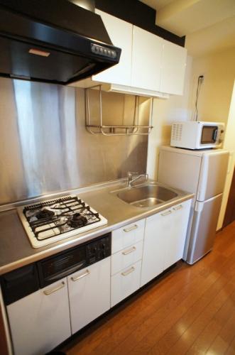 | 部屋備品 | 寝具 / 洗濯機 / 冷蔵庫 / 電子レンジ / 掃除機 / テレビ / 照明器具 / カーテン / 食器類 / リネン類 / 雑備品類 / 2口ガスコンロ / デスクセット |