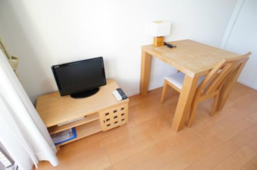 | 部屋備品 | 寝具 / 洗濯機 / 冷蔵庫 / 電子レンジ / 掃除機 / テレビ / 照明器具 / カーテン / 食器類 / リネン類 / 雑備品類 / 2口ガスコンロ / テーブルセット / VHSビデオデッキ / DVDプレイヤー |