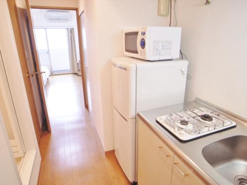 | 部屋備品 | 寝具 / 洗濯機 / 冷蔵庫 / 電子レンジ / 掃除機 / テレビ / 照明器具 / カーテン / 食器類 / リネン類 / 雑備品類 / 2口ガスコンロ / デスクセット / VHSビデオデッキ / DVDプレイヤー |