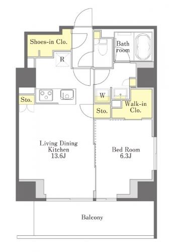 間取 (タイプ) | 1LDK (カップル向き) |