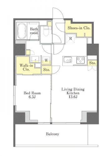 間取 (タイプ) | 1LDK (カップル向き) |